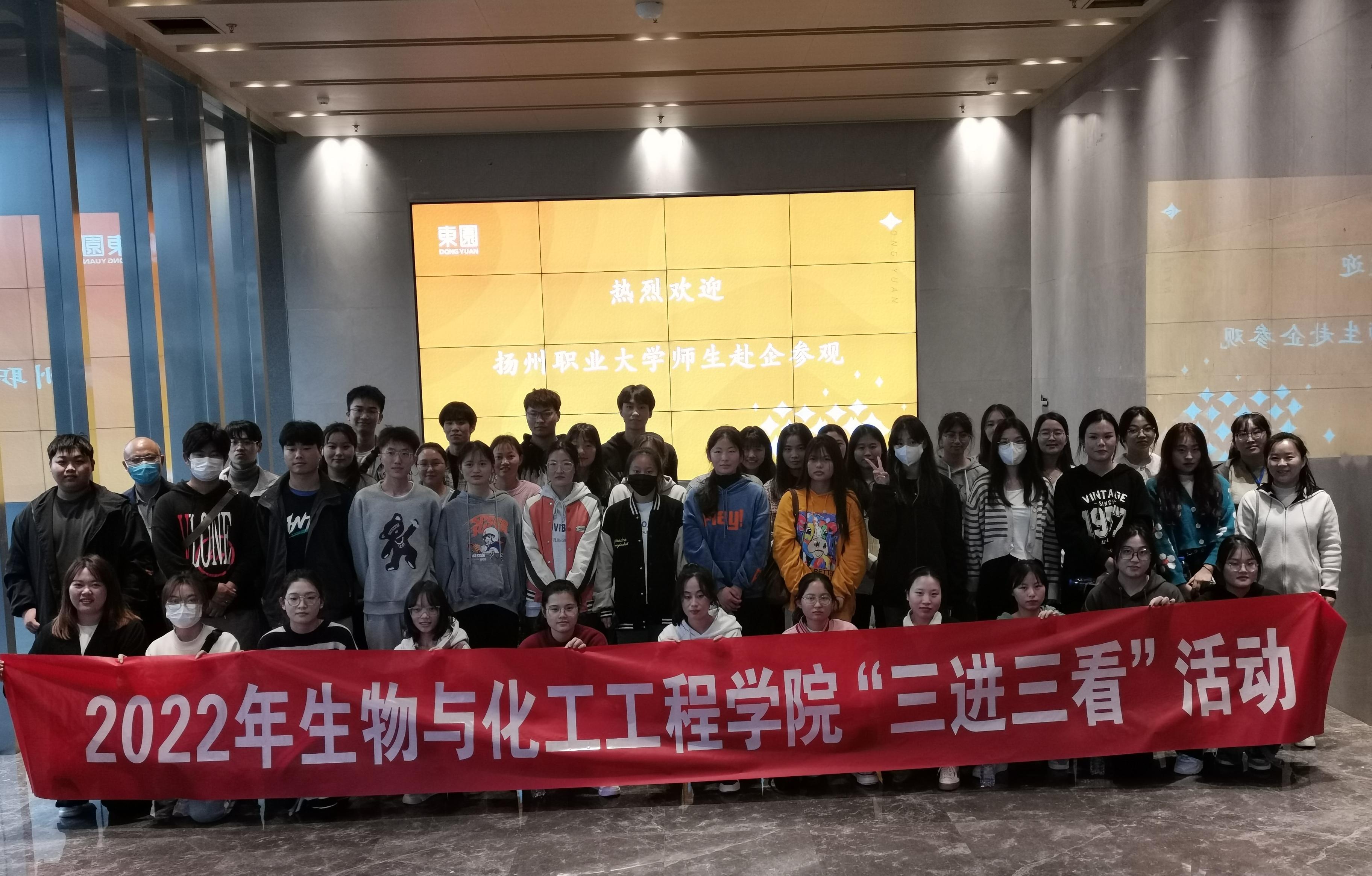 为进一步拓展毕业生实习就业平台,打通人才协同培养“任督二脉”,提高毕业生留扬率,助力扬州本土企业发展,11月11日下午,BBIN宝盈官网开展了“三进三看”活动。2023届毕业生代表前往扬州东园集团实地参观,并与企业领导、有关部门负责人及员工代表进行了双向互动。
