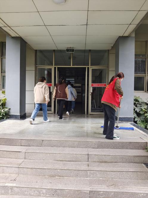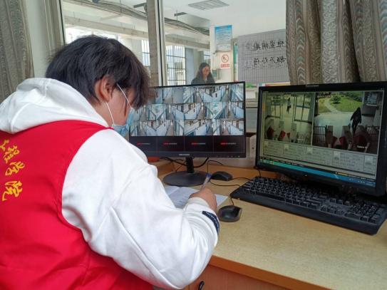 陆思源、吴霜两位同学坐在宿管阿姨办公室里,时刻关注着办公桌上的监控设备、窗外的进出闸机情况、有没有不刷卡直接跨过闸机的同学等。在观察的过程中,发现部分同学直接跨过闸机,志愿者还没发现,阿姨就立马提醒并制止了,这让志愿者们深刻体会到了这个基层岗位的重要性。志愿者们对宿管阿姨严谨认真、观察仔细的工作态度由衷佩服,同时也充分意识到岗位无大小,职位无高低,每一份职业都需要被尊重,以后要更加配合宿管阿姨的工作,减轻她的工作负担。