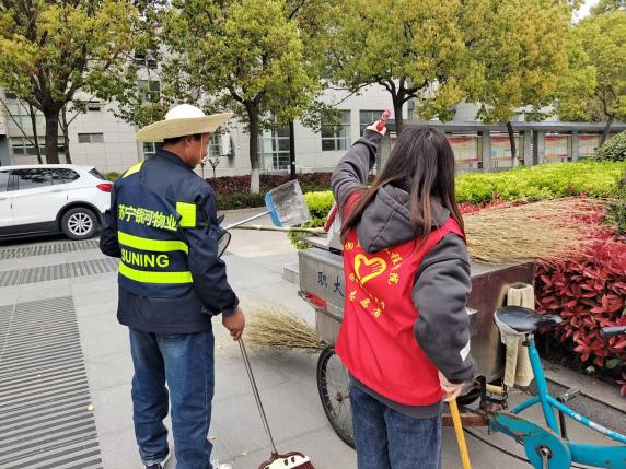 “我刚把地拖好,两位同学走过,踩出了两排脚印,好无奈。”李笑同学哭笑不得的说道。而严萌同学表示,打扫校园看似工作机械简单实则不容易,遇到地面凹凸不平之处将垃圾清扫出来很费力,如果遇到口香糖之类的粘性垃圾,更是费力......通过此次“换岗体验”,志愿者们意识到以后要更加珍惜保洁阿姨的劳动且做好自律。