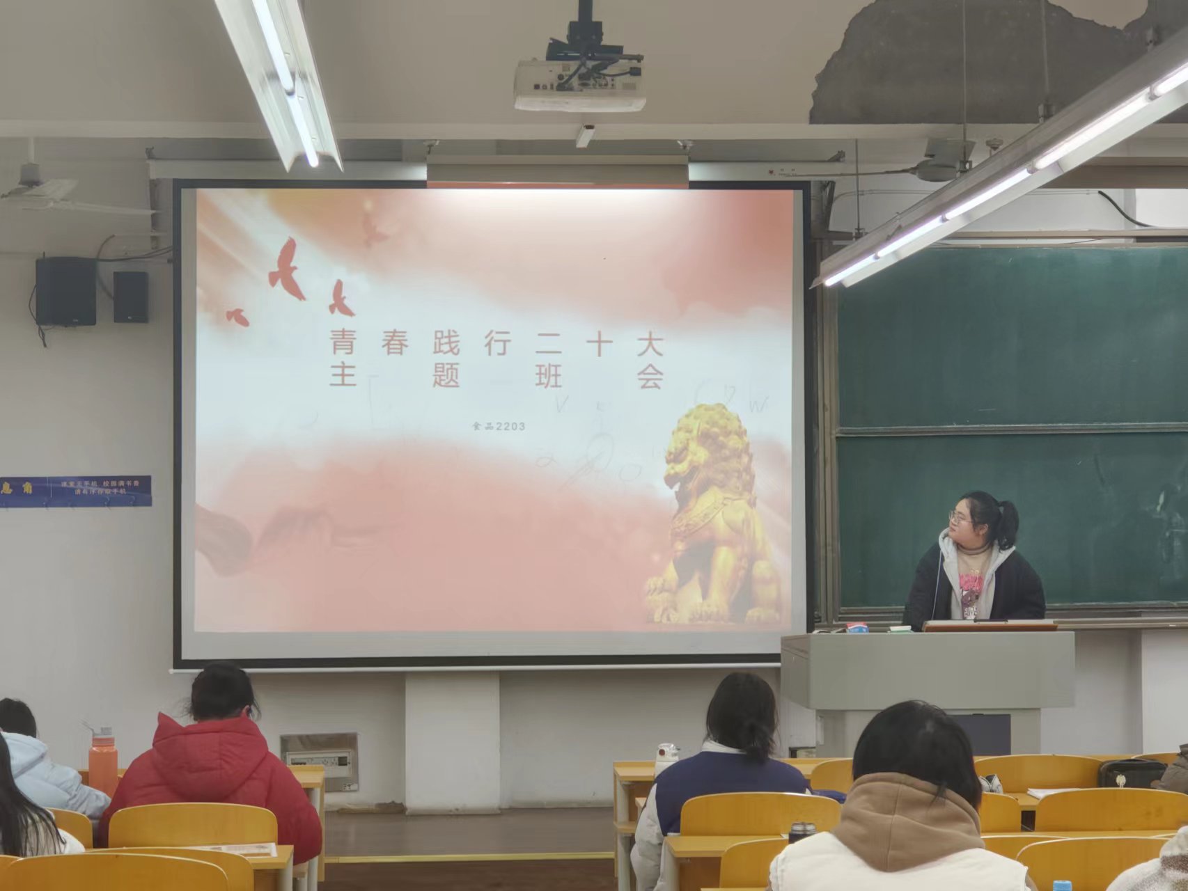 化工2201、食品2201、食品2203等班级围绕“员工心理健康”、“解读二十大精神”、“互动交流成长经历”等内容开展主题班会,引导员工深入贯彻党的二十大精神,激扬青春梦想,奋进新时代;食品2101、食品2102、药技2101、药技2102班围绕“爱国、团结、奋斗、科学、互助”五个关键词,分享践行党的二十大精神,并重点强调了员工的安全问题,引导员工提高安全警惕意识,做好自身安全的第一责任人;食品2202班以“家国情怀”为切入点开展主题班会,并邀请员工干部作了题为“中国青年”的主题演讲。药技2203班邀请了20级员工党员王思懿分享个人学习、生活经验,通过朋辈对话的形式,生动展示了当代青年将“小我”成长融入“大我”奋斗之中的先进事迹和青春风采;化工2201班向员工分享林俊德同志的英雄事迹,用他的献身事业的精神引导员工践行新时达老员工的责任担当,并向员工介绍了中国过去的十年发展史,通过举例让员工领悟过去十年的发展成就,明确跟党走、听党话的重要性。
